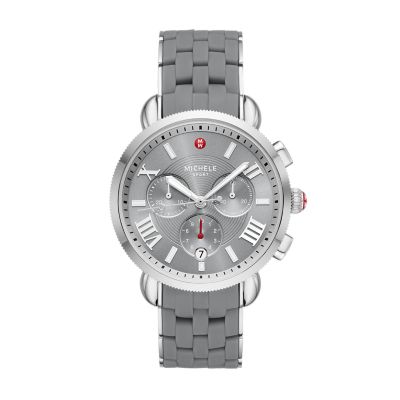 Hours minutes seconds date chronograph. MICHELE Sport Sail Chronograph Watch Head with Silicone Strap 38mm. Add a touch of glamour to your personal style with watch faces set with gorgeous materials like hand-set sparkling diamonds sapphire crystals and mother-of-pearl.
